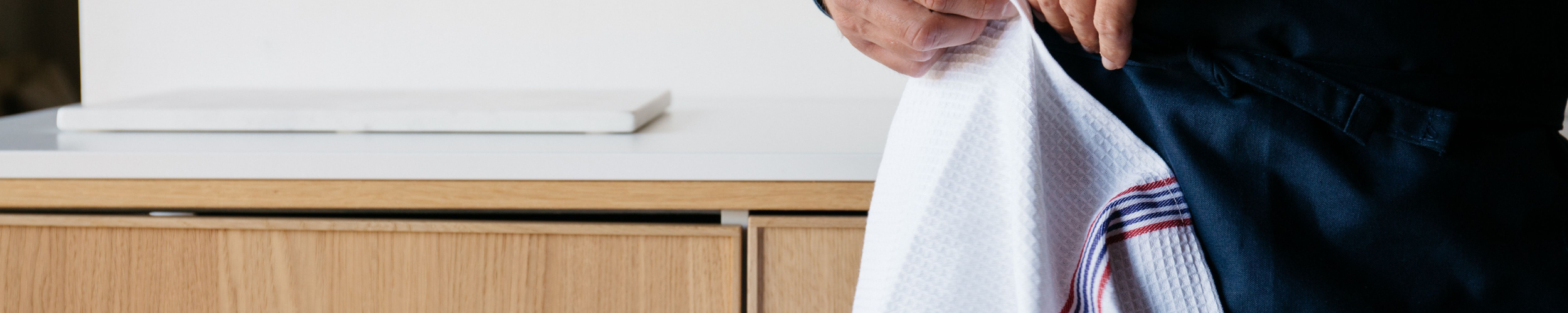 Geschirrtücher, Schürzen, Handtücher … diese Textilien werden stark beansprucht. Daher ist es wichtig, hochwertige Materialien zu wählen, die pflegeleicht, saugfähig und langlebig sind.